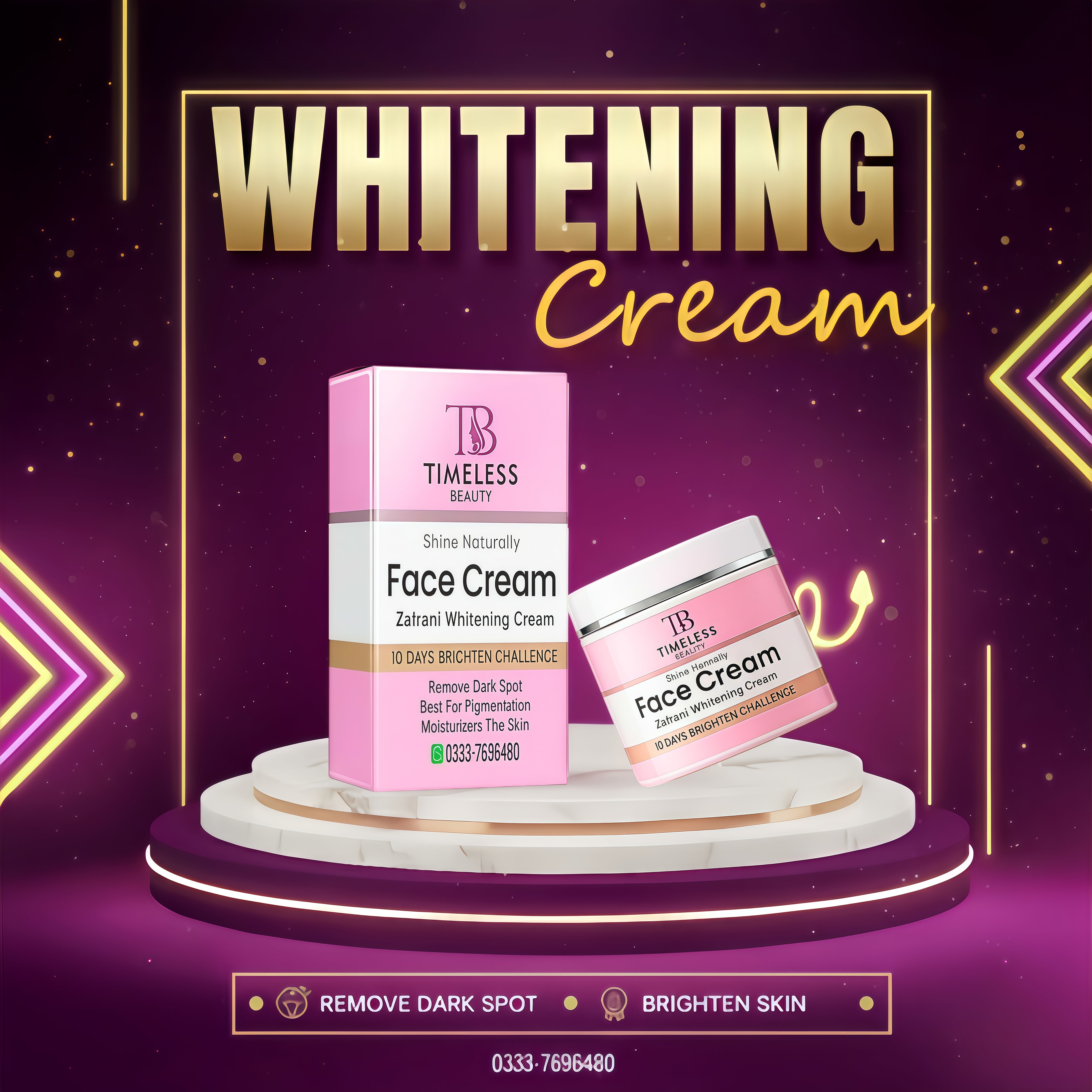Mr Timeless Beauty Whitening Cream is an original Zafrani cream from Pakistan. It helps to brighten skin and improve complexion. With regular use, visible results can be seen in just 7 days. This cream is made for smooth, fresh, and glowing skin, suitable for daily use.